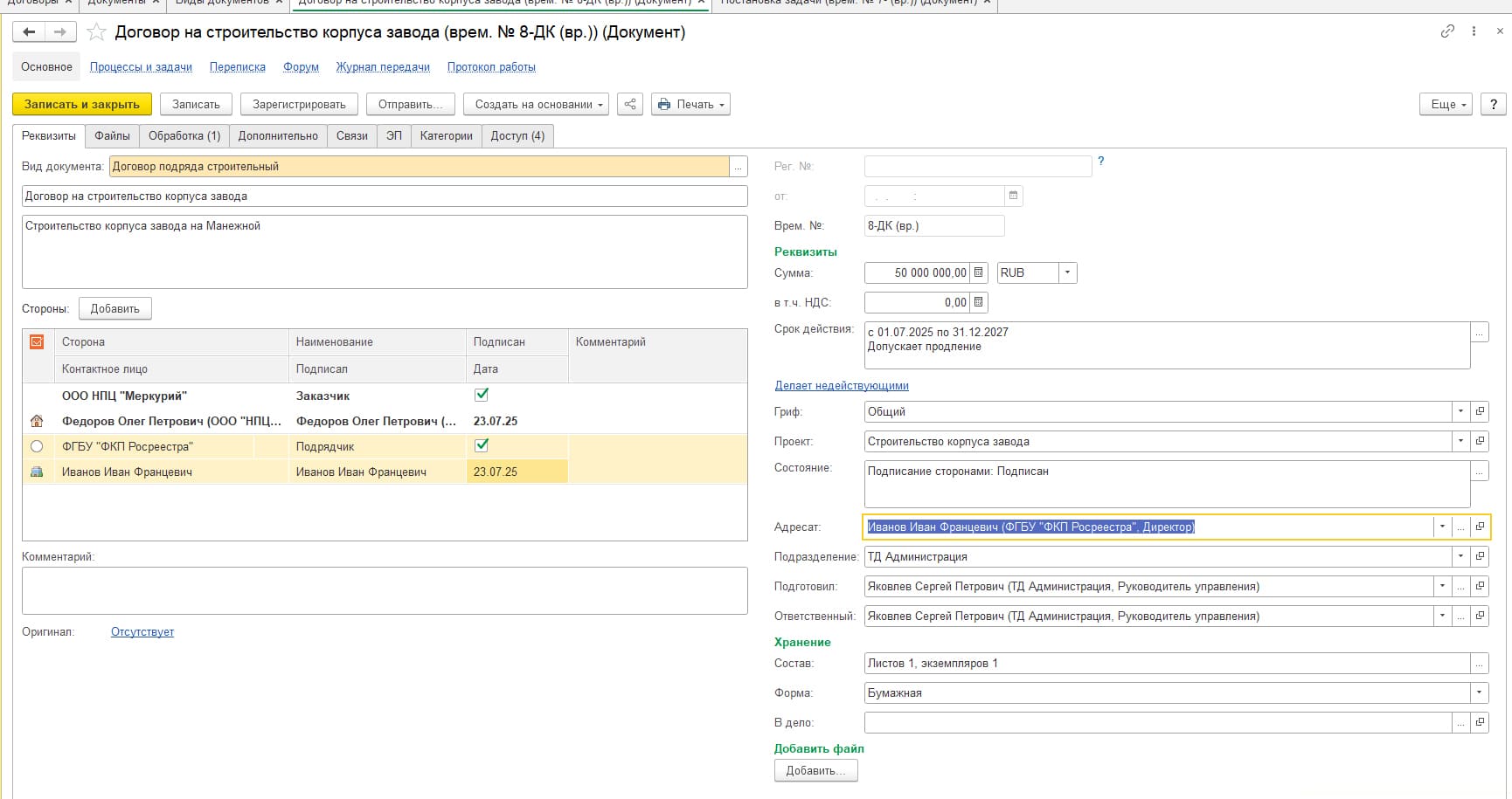 Пример автоматизации документооборота с подрядчиками в 1С Документооборот