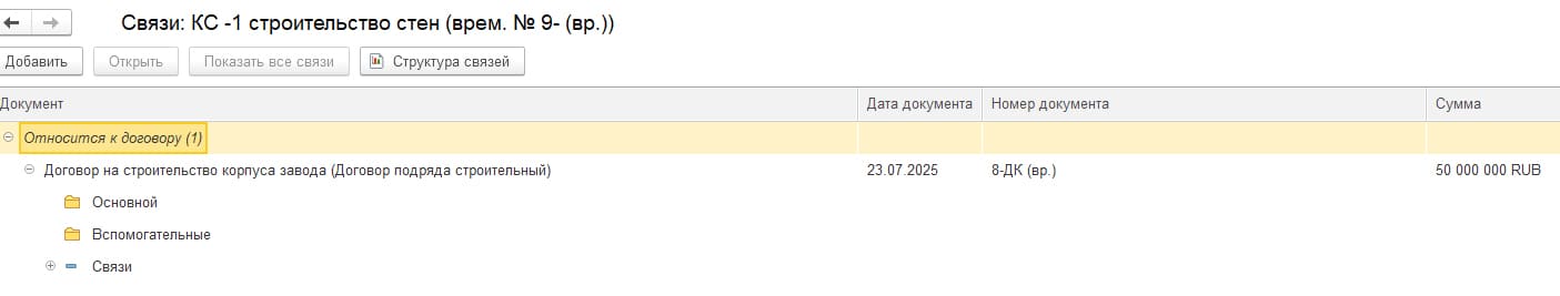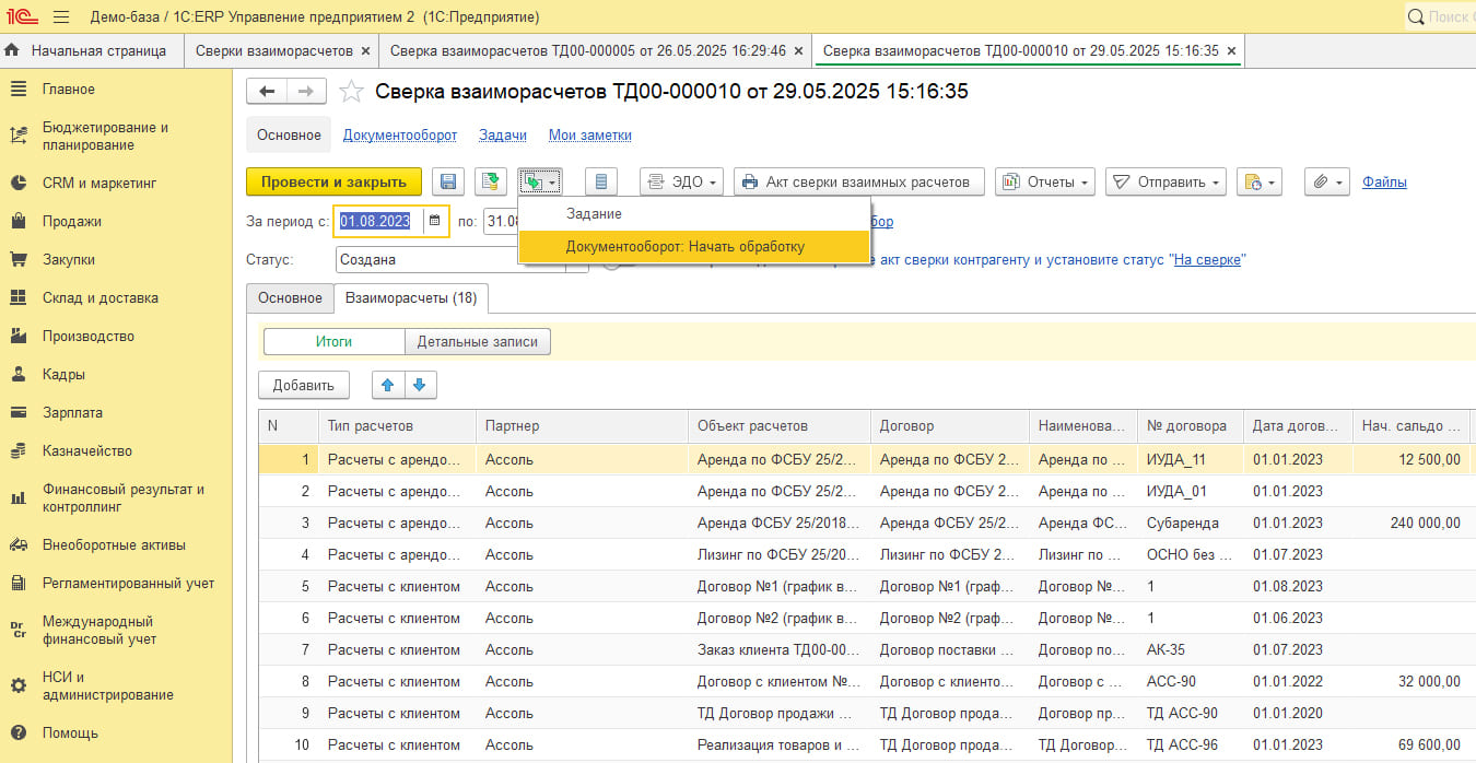 - Акт сверки формируется в 1С ERP Управление строительной организацией